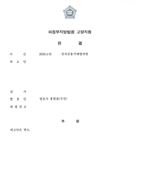피고인은 전자금융거래 접근매체를 양수하였다는 범죄 사실로 기소된 사안이었습니다.